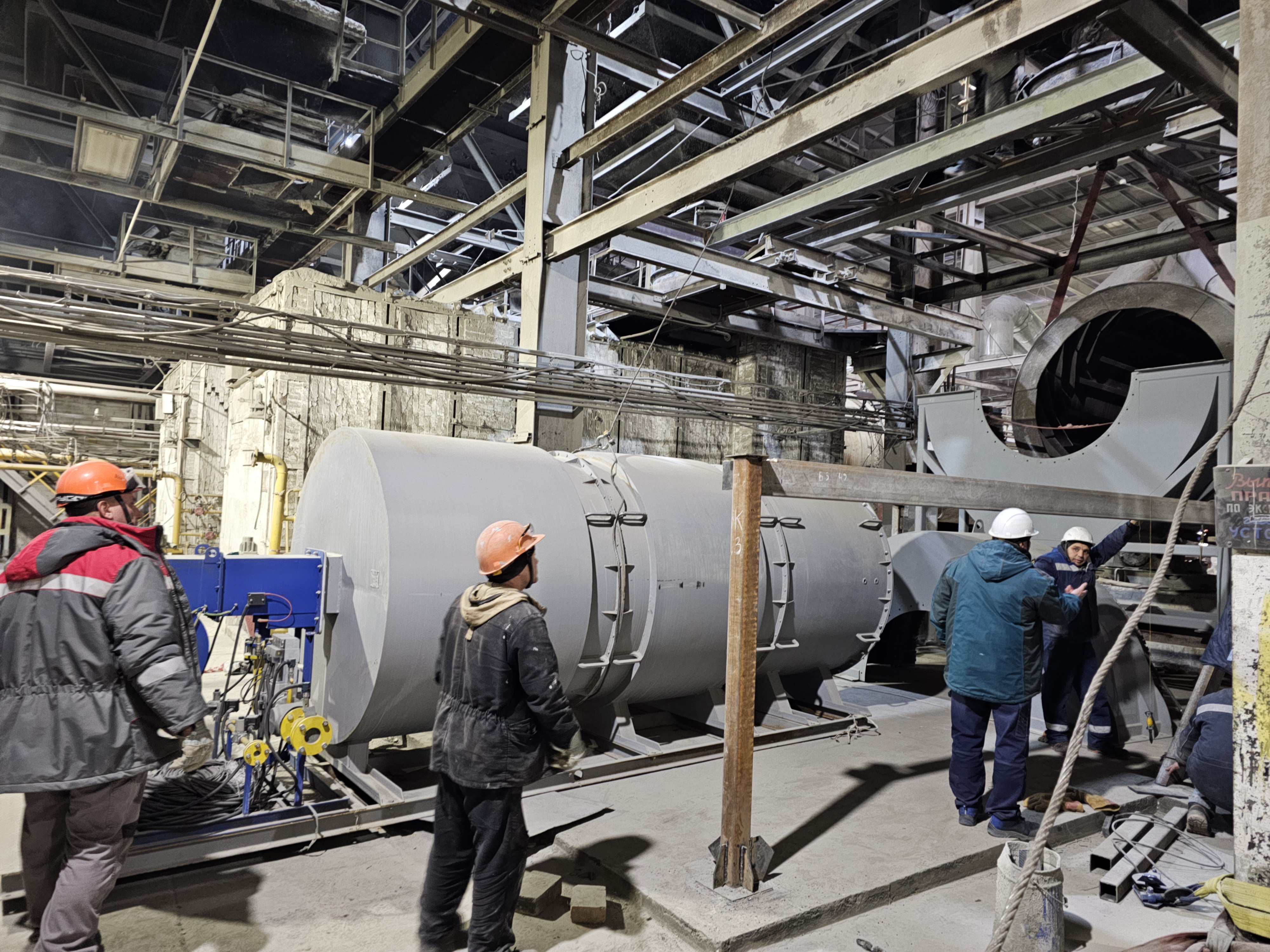 В настоящий момент производится демонтаж прежних горелок, топок и приемочных камер. Далее будет следовать последовательный монтаж загрузочных камер, воздухонагревателей, систем АСУ ТП, элетроснабжения и газоснабжения, инженеры завода-изготовителя осуществляют шеф-монтаж.